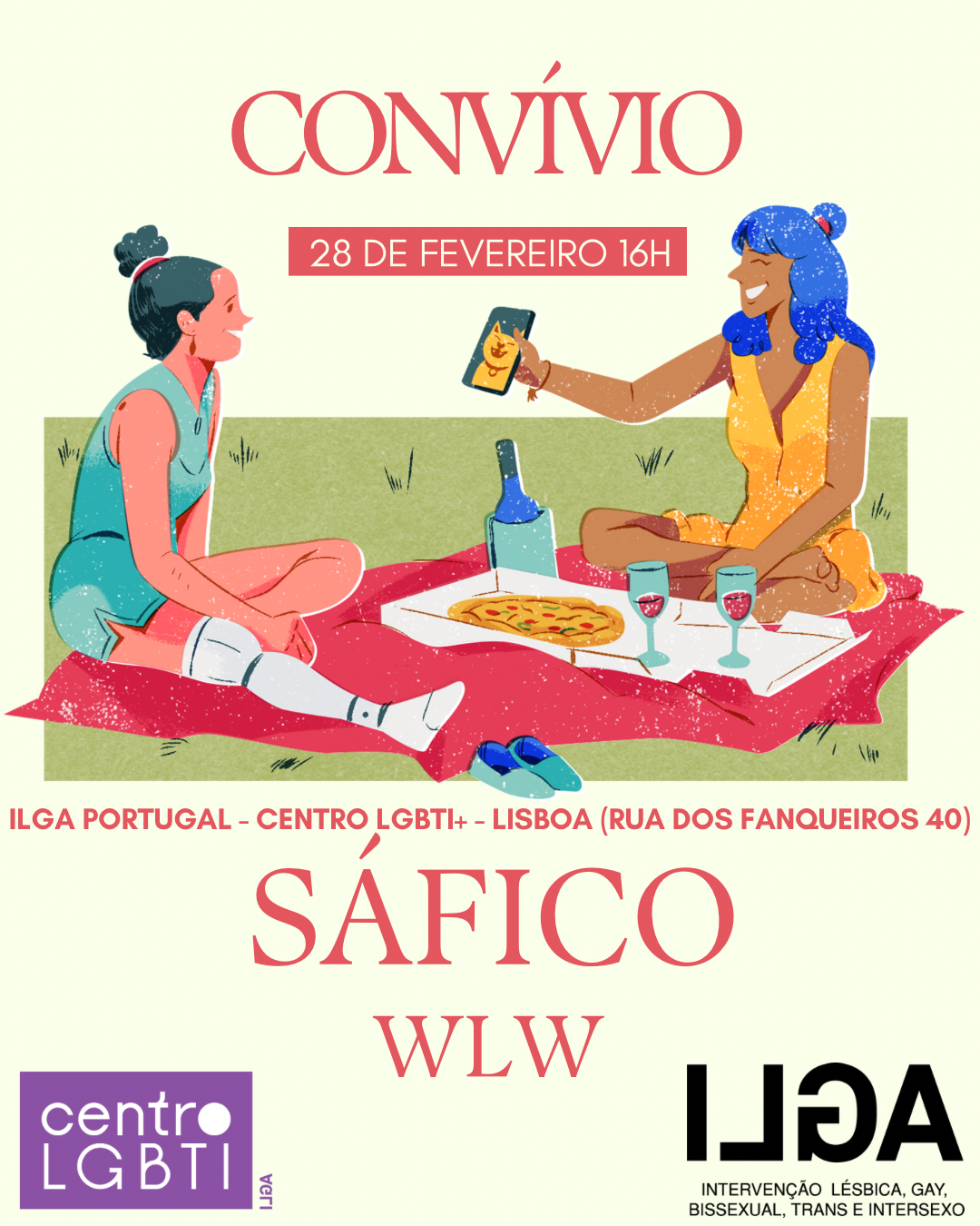 Aparece no próximo dia 28 de fevereiro no Convívio/Piquenique Sáfico no Centro LGBTI+ a partir das 16h00. Um convívio para todas as pessoas sáficas!