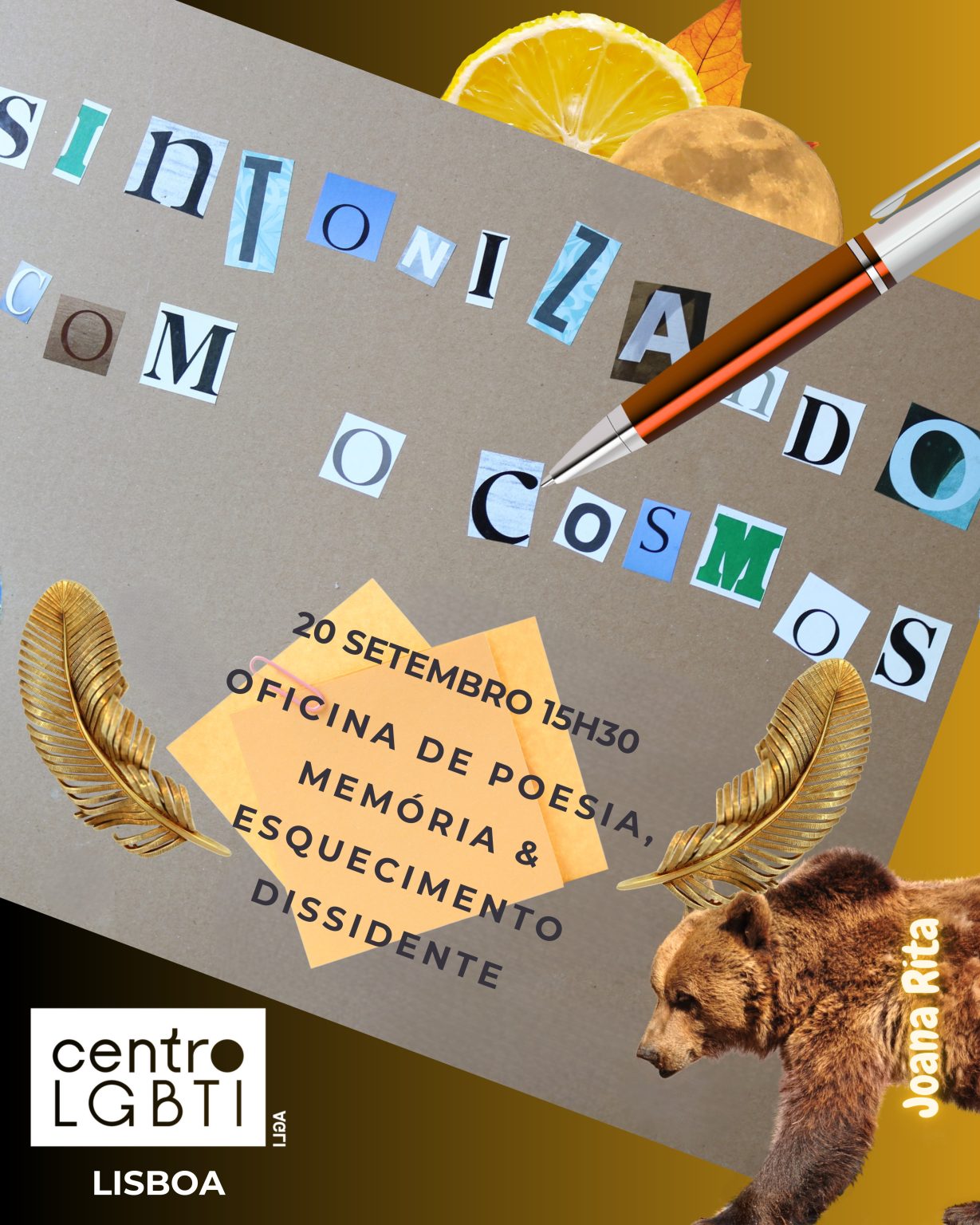 Esta atividade faz parte do ciclo artístico Sintonizando com o Cosmos que integra uma exposição, oficinas, uma fanzine e festa de encerramento. Sabe mais aqui, inscreve-te e participa.