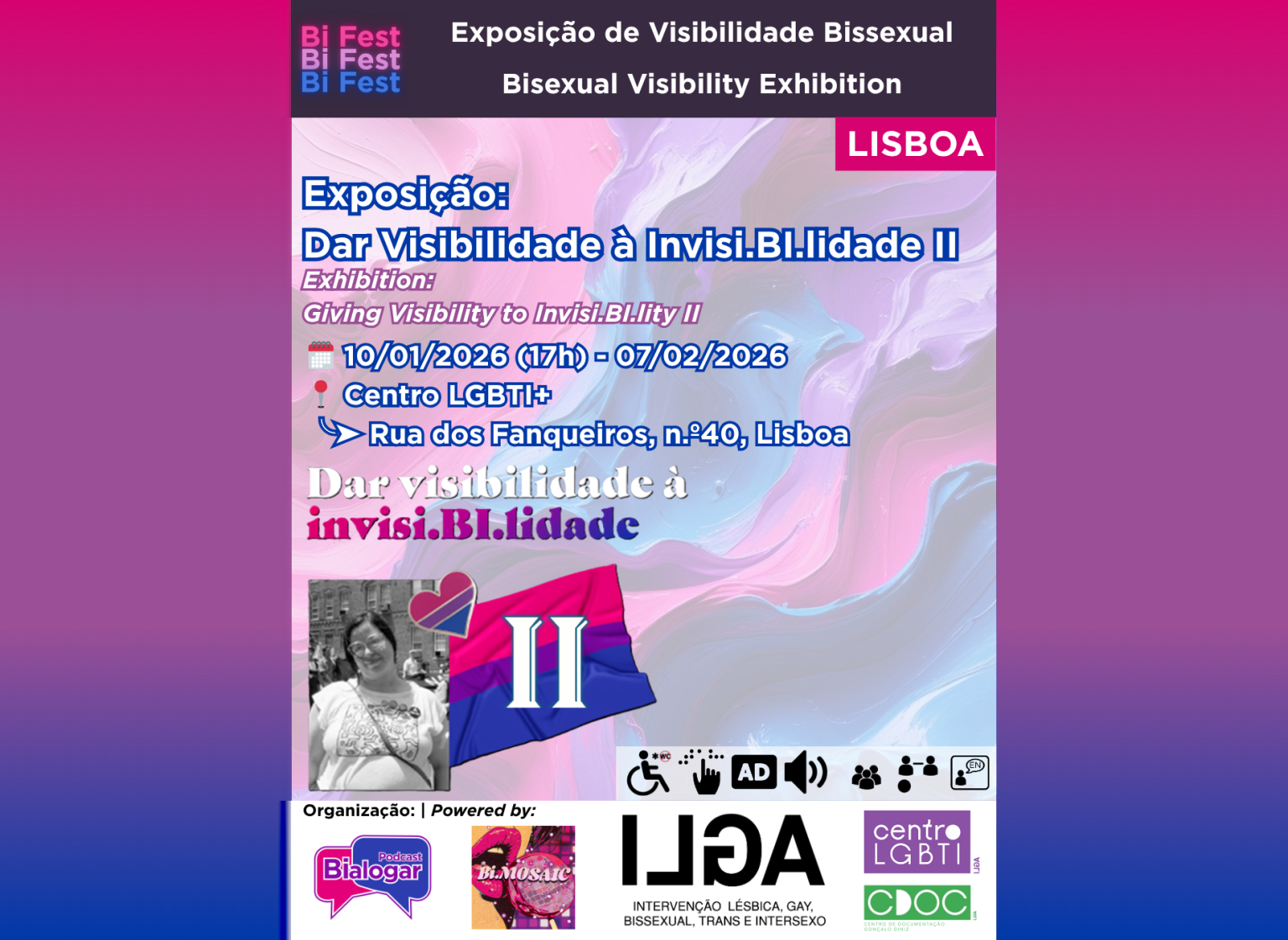 A Exposição “Dar Visibilidade à Invisi.BI.lidade II”, composta por fotografias, textos, poesia, pinturas e desenhos, pretende homenagear ativistas, figuras históricas, celebridades e pessoas Bissexuais+ em geral, servindo como um meio para criar visibilidade para um comunidade tantas vezes invisibilizada.