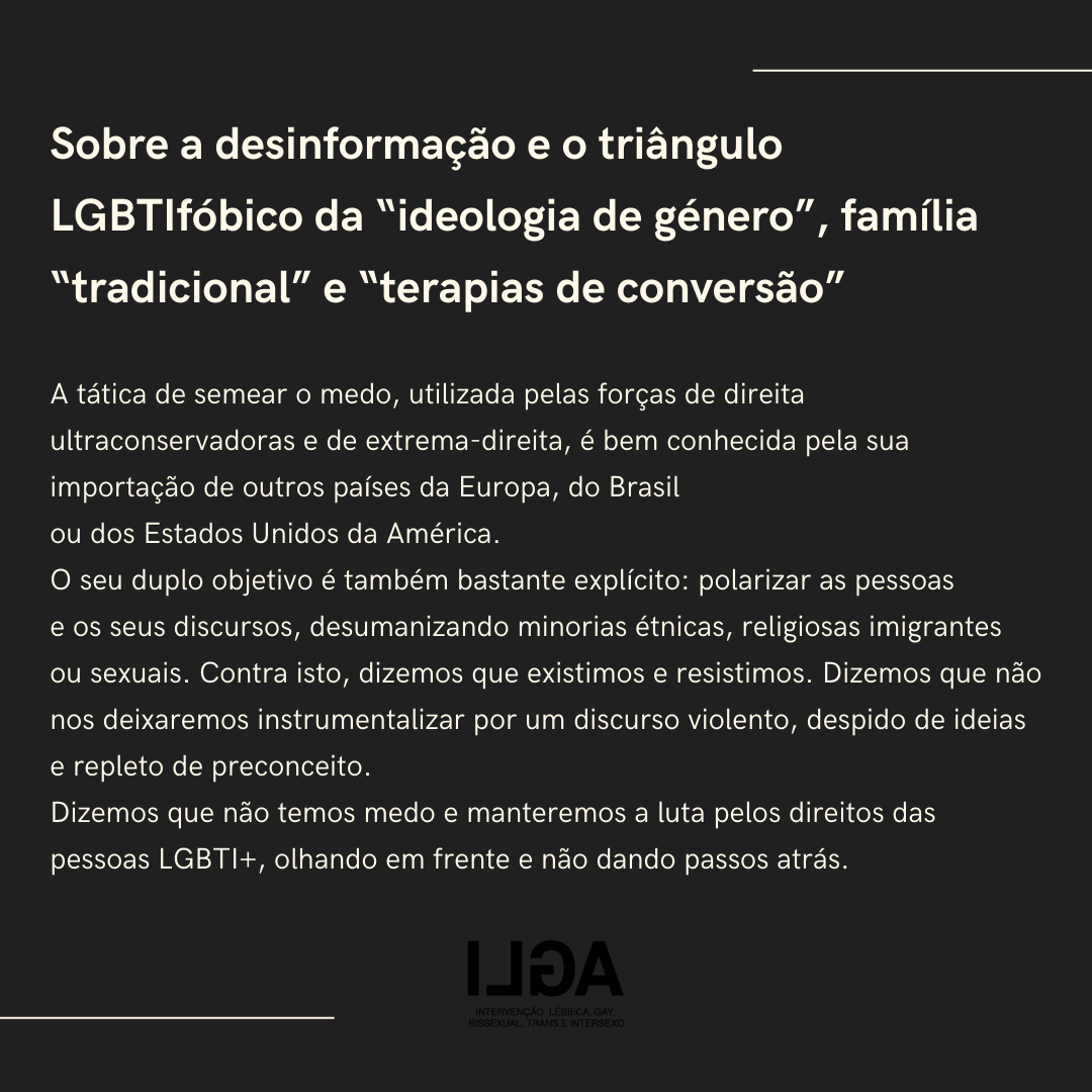 Sobre a desinformação e o triângulo LGBTIfóbico da “ideologia de género”, família “tradicional” e “terapias de conversão”