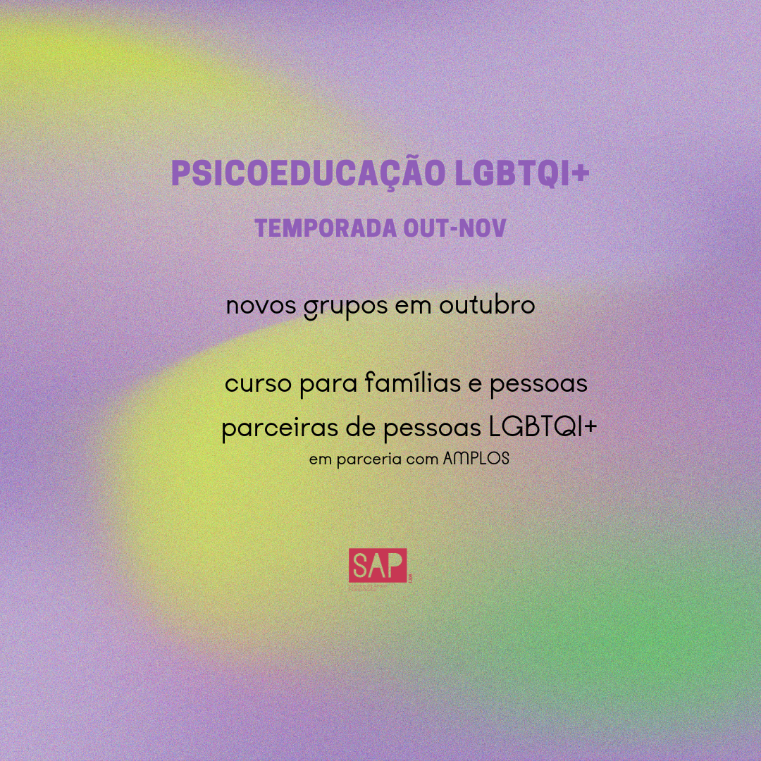 A Psicoeducação para pessoas familiares e parcerias de pessoas LGBTQI+ é um ciclo aberto a qualquer pessoa com mais de 18 anos e que lhe permitirá explorar conceitos relacionados com orientação sexual identidade e expressão de género e características sexuais e abordar as temáticas vividas por pessoas LGBTQI+ e as pessoas que as rodeiam, encontrando estratégias que visam a adaptação familiar e/ou relacional após a descoberta de uma orientação sexual e/ou identidade de género diferente da esperada.